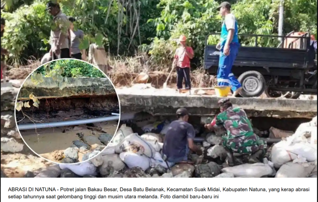 Abrasi Ancam Jalan Penghubung Dua Kecamatan di Natuna, Warga Berharap Solusi Permanen