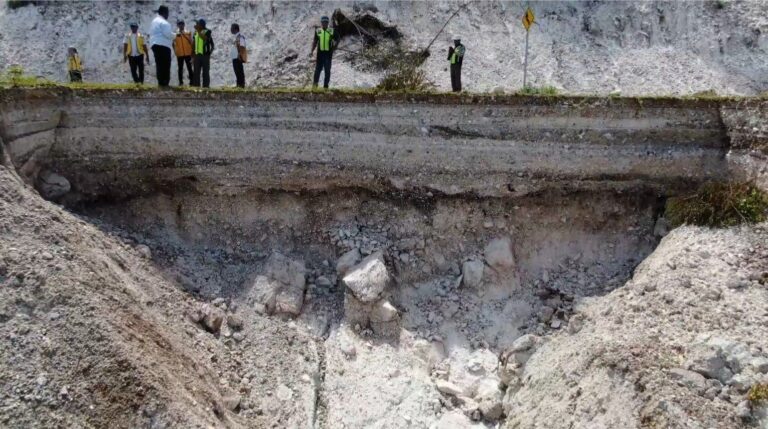 Kepala Pelakasana BPBD Kabupaten Natuna saat memantau bekas longsor di Gunung Ranai (Sumber Foto: BPBD Natuna) KBRN, Ranai: Selain...