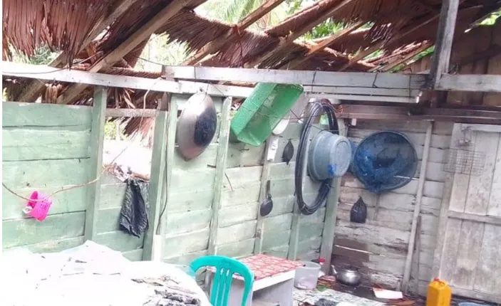 Salah satu bagian rumah warga yang rusak akibat diterpa angin kencang di Kelarik Bunguran Utara -f/istimewa / NATUNATODAY - Bencana angin...