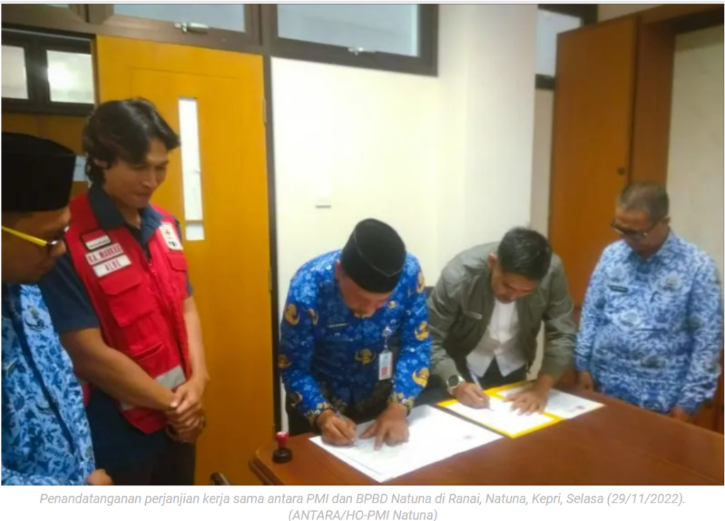 Natuna (ANTARA) – Palang Merah Indonesia (PMI) dan Badan Penanggulangan Bencana Daerah (BPBD) Kabupaten Natuna, Provinsi Kepulauan Riau melakukan penandatangan perjanjian kerja sama terkait dengan penanggulangan bencana di daerah tersebut.
